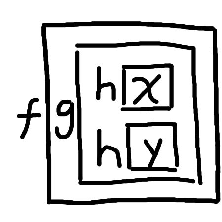 While we’re at it, we might as well have a notation for map (applying \(f\) to each element of a list): \(f \leftleftarrows \boxed{x, y, z} = (f(x), f(y), f(z))\)