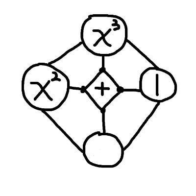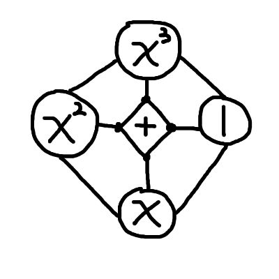 For example, polynomials are usually written like \(x^3+x^2+x+1\). With prefix notation it looks a bit better, as \(+(x^3, x^2, x, 1)\). But let’s apply the principle of Going Beyond Left to Right, and add circles and regular polygons!